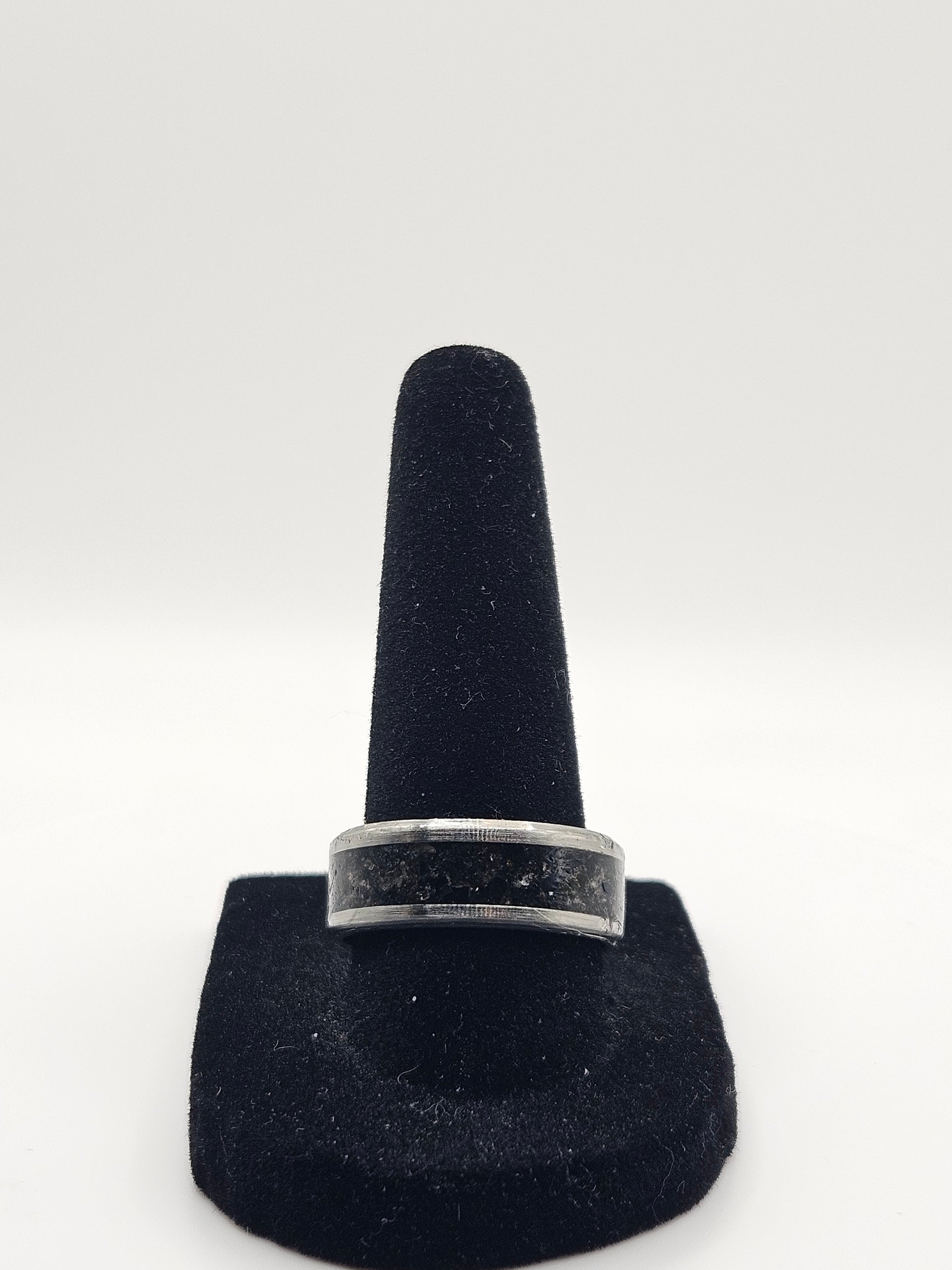 Black Turmaline & Rose Quartz Stainless Steel Ring Sizes 7 - 12 8mm width