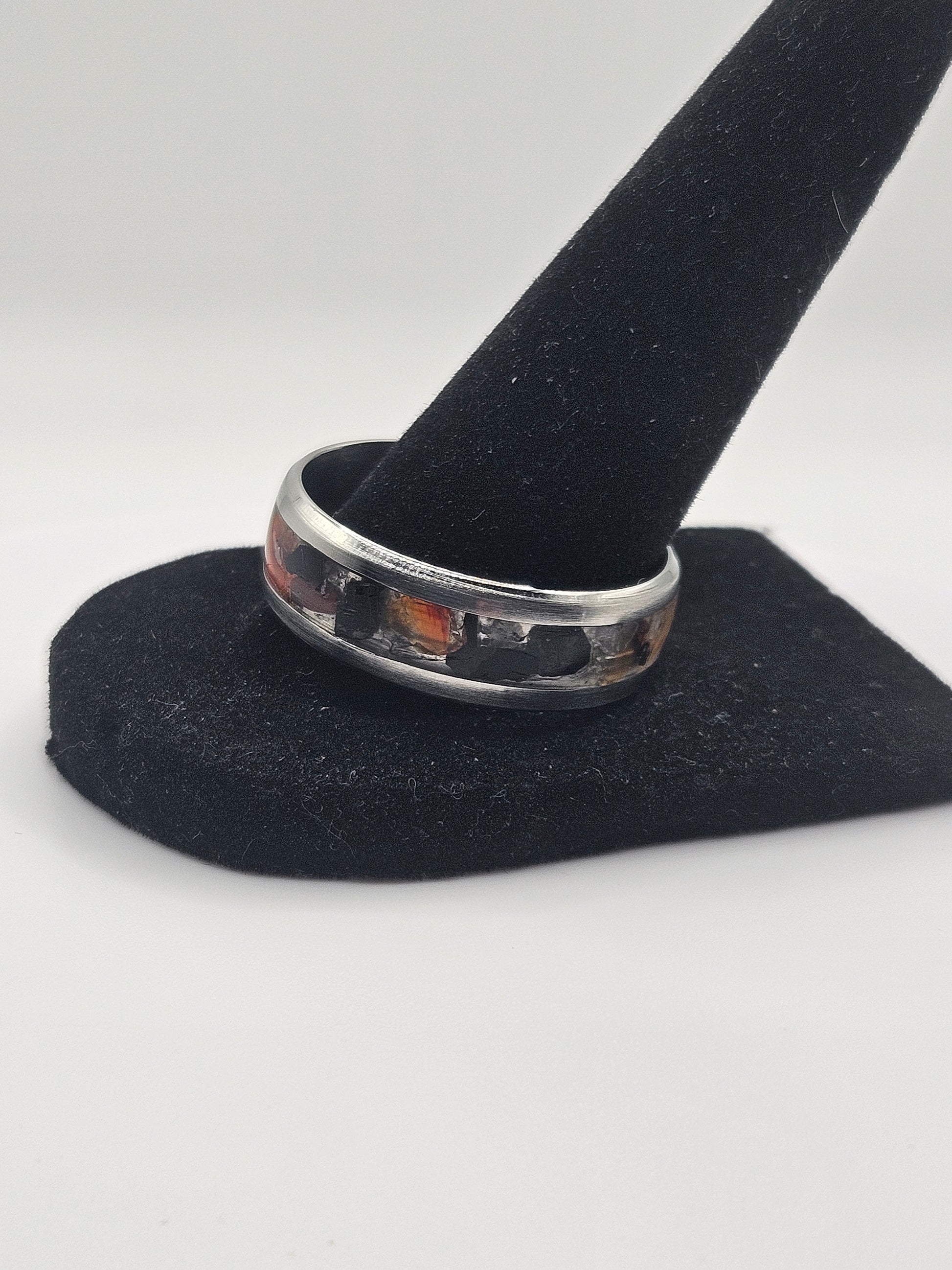 Carnelian, Black Tourmaline, and Rose Quartz mix Stainless Steel sizes 7-12 8mm width