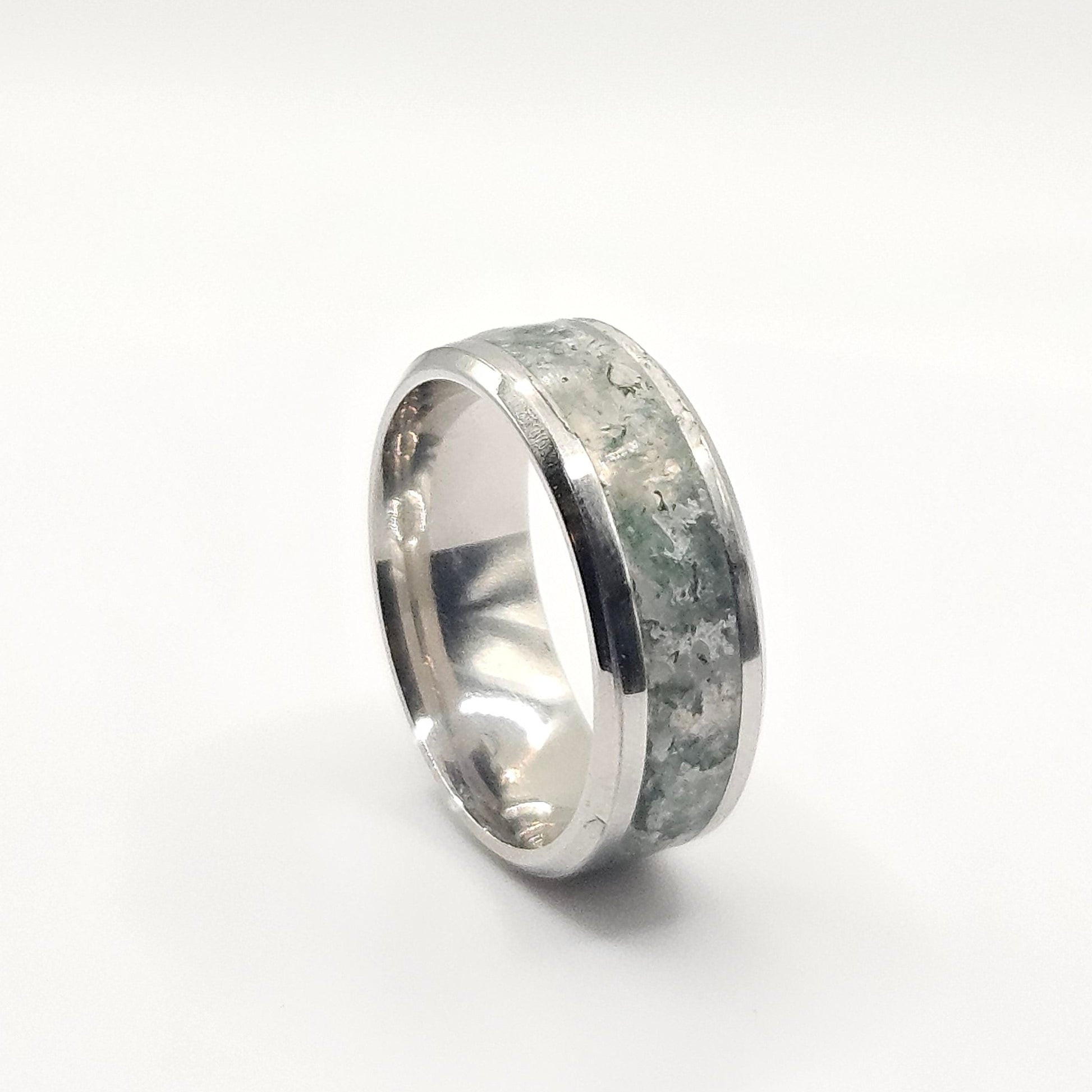Moss Agate Stainless Steel Ring Sizes 4.5-12 Widths 8mm,6mm,2mm