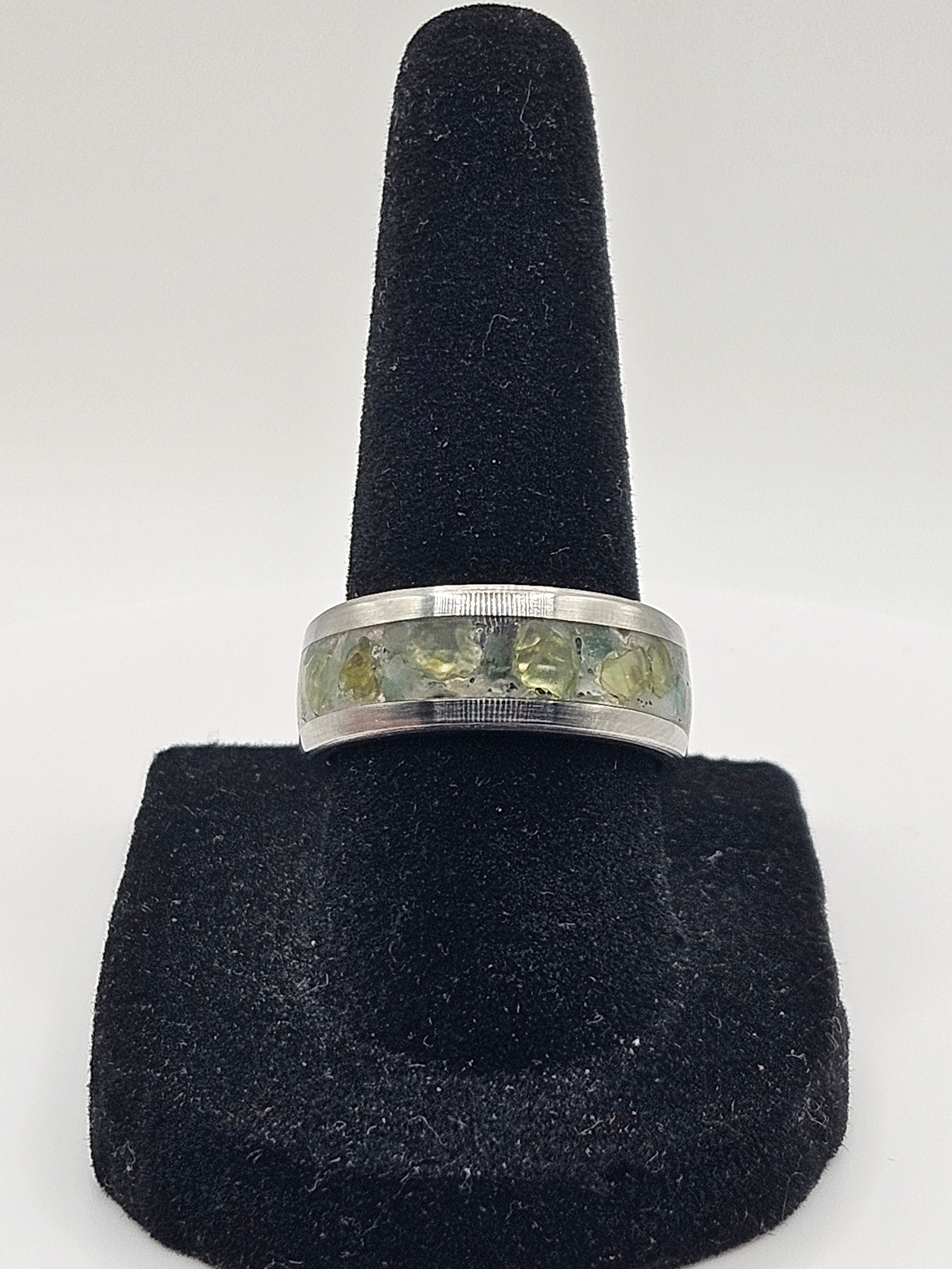 Peridot and Emerald mix Stainless Steel sizes 7-12 8mm width