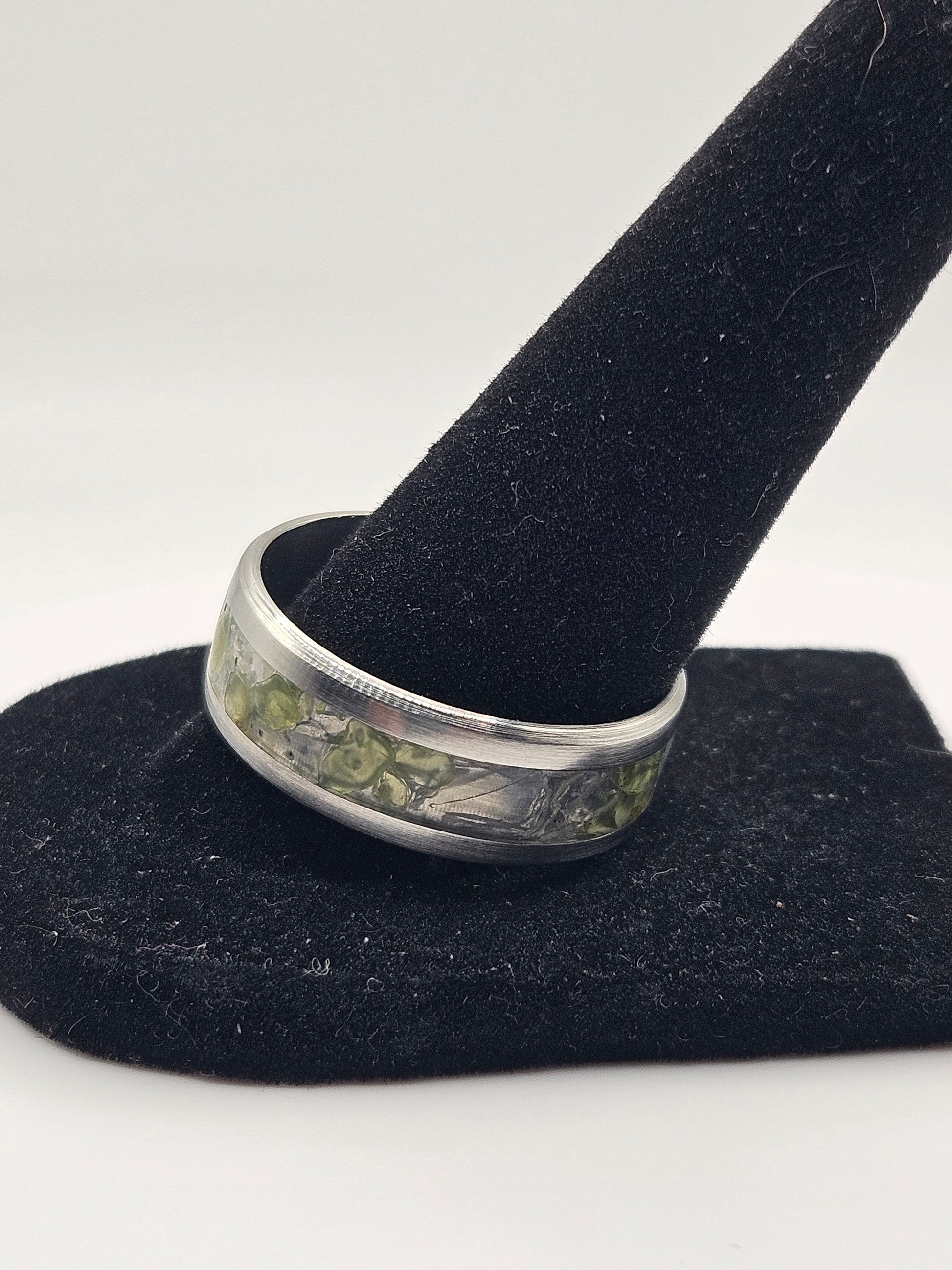 Peridot and White Opal mix sizes 7-12 8mm width